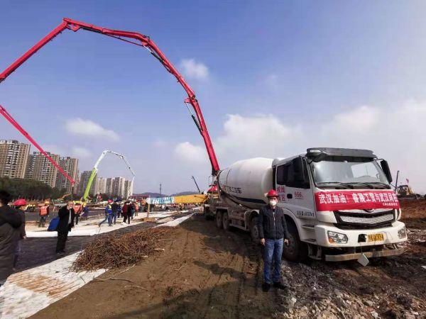 而在這之前的28日上午10時,徐承忠信守承諾,護送裝有2000立方米混凝土的泵車到達武漢火神山醫(yī)院施工現(xiàn)場,用于地基澆筑。